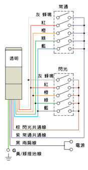 ● 此系列警示燈主要特點為單層多色,可降低總高度,有紅,橙,綠,藍四種顏色,以供選擇。
