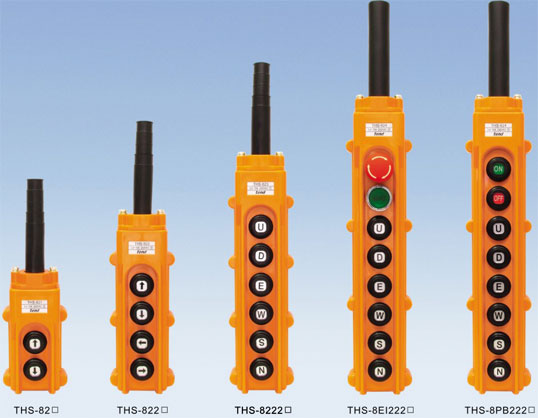 ● 本开关为防水之悬态式吊车开关,外壳采用ABS树脂,绝缘佳,即使屋外使用,亦安全无虞。
